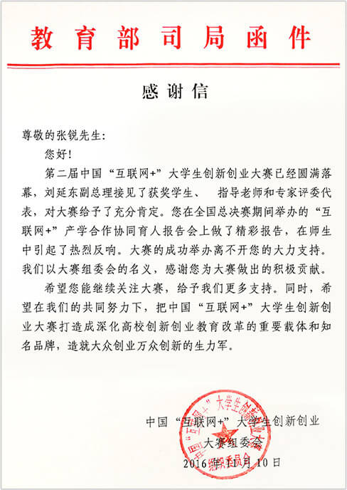 雨燕直播董事长张锐受聘国家级大学生创新创业训练计划专家组副组长。
